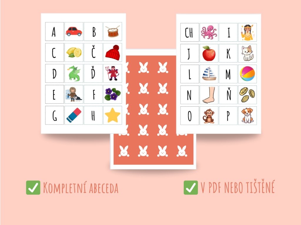 Kompletní abecedu – 34 písmen a 34 obrázků