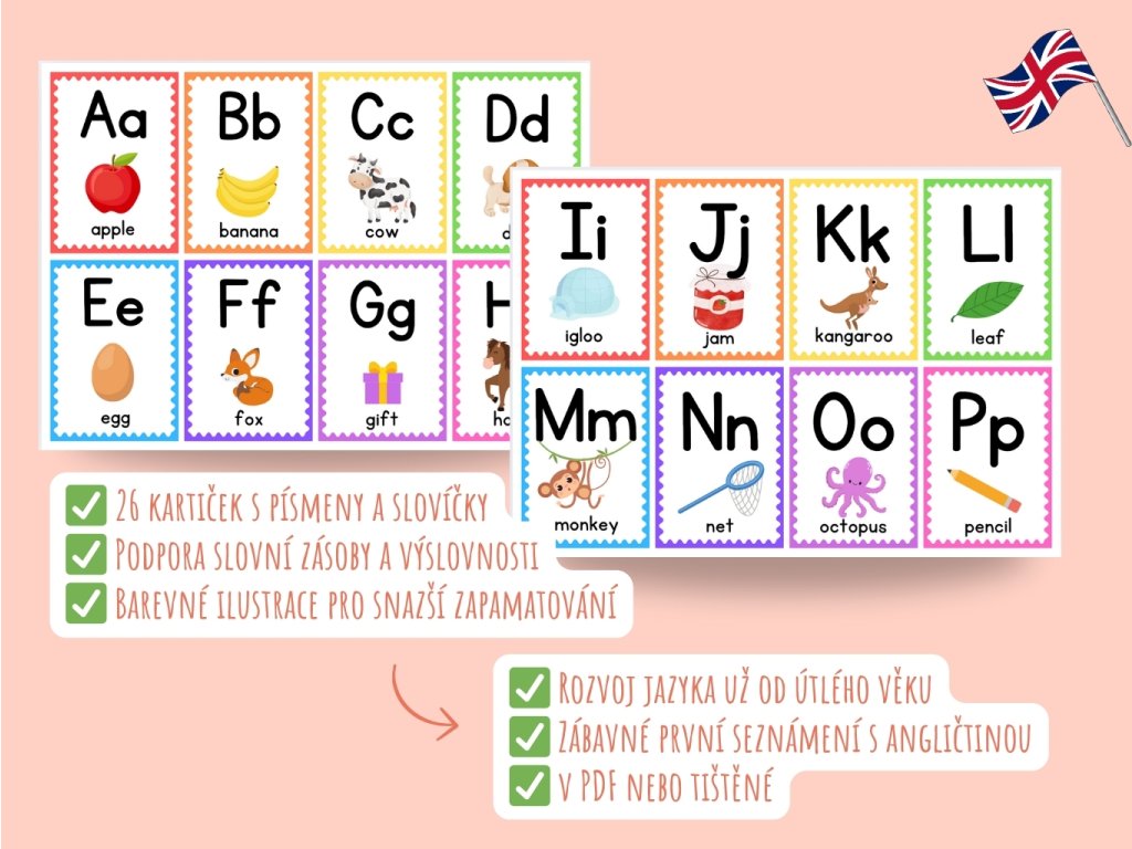 Alphabet Flashcards – anglická abeceda s obrázky pro děti