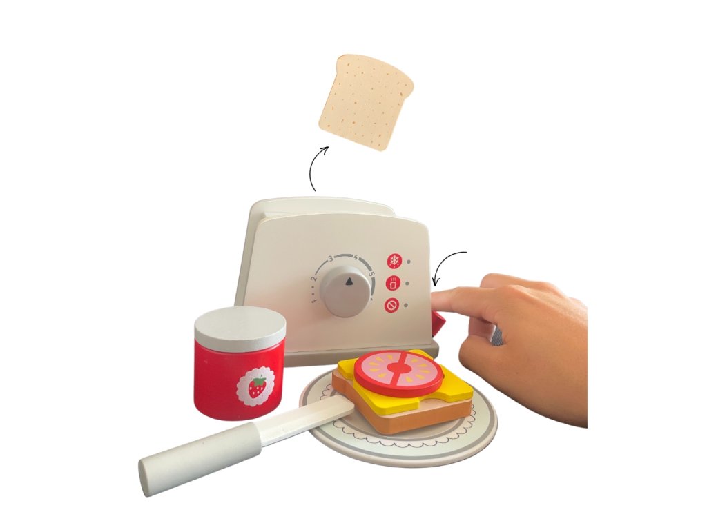 🥪 Náš dřevěný toustovač je dokonalou hračkou a doplňkem do každé dětské kuchyňky! Tato kvalitní a bezpečná dřevěná hračka umožňuje vašim dětem hrát si na pekárny a připravovat si vlastní snídaně, jako velcí kuchaři.