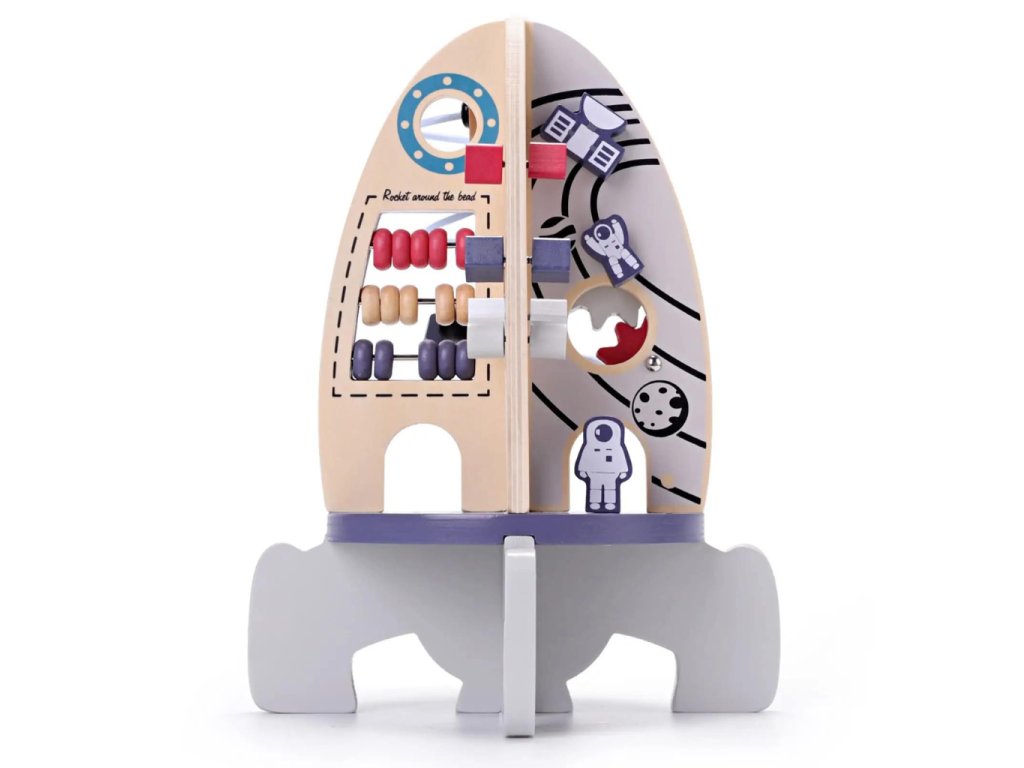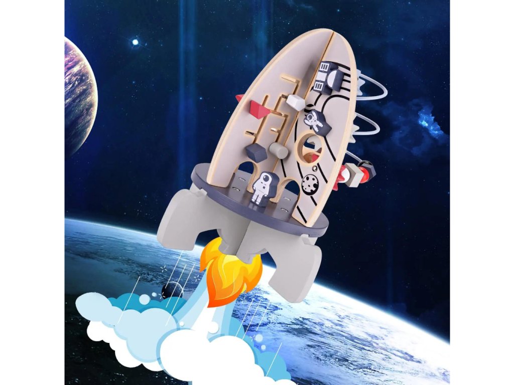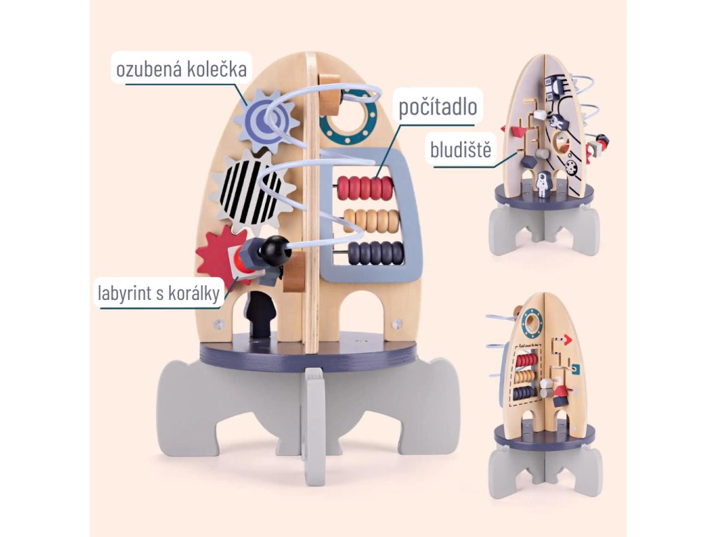 🚀 Raketa obsahuje různé hrací prvky, které budou děti bavit a zároveň je učit.