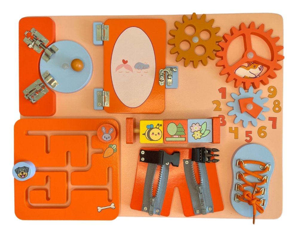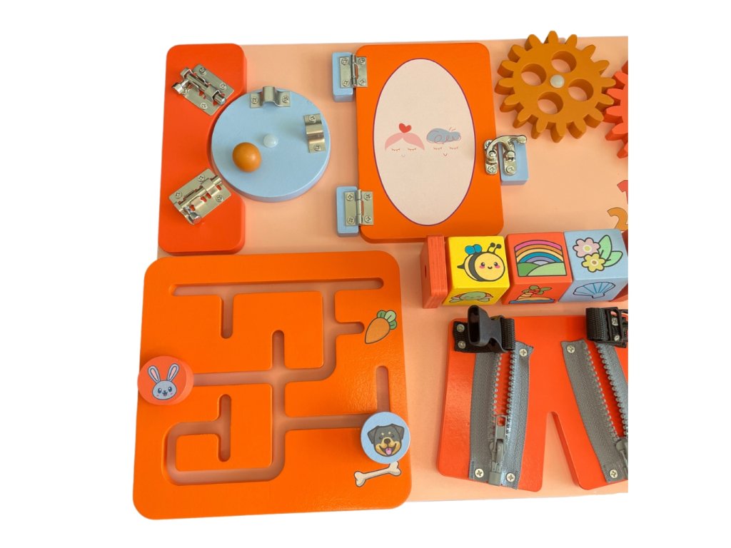 Dřevěná motorická deska pro děti – busy board - poškozená krabice