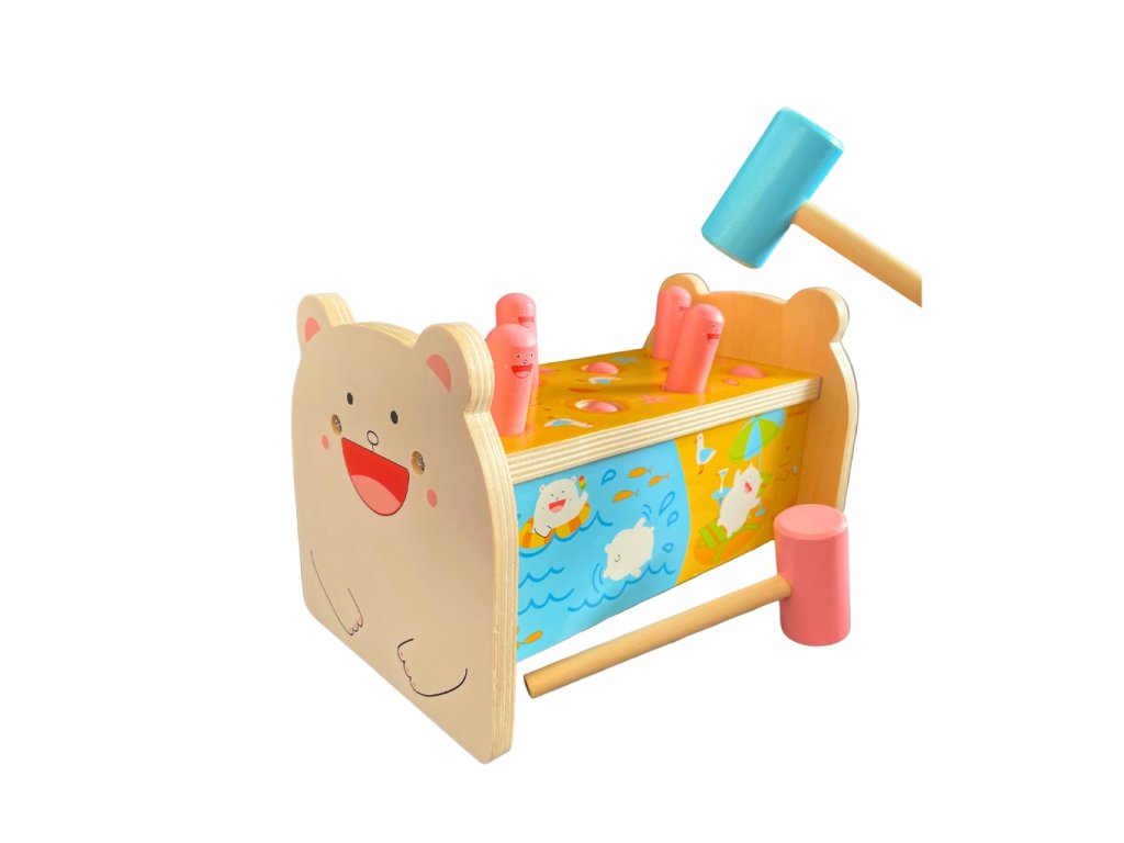 Úkolem dítěte je použít dřevěné kladívko, které je součástí setu, a zatlouct červíka otvorem do krabičky. Jaké je to ale překvapení, když červík zas vyskočí na druhé straně?