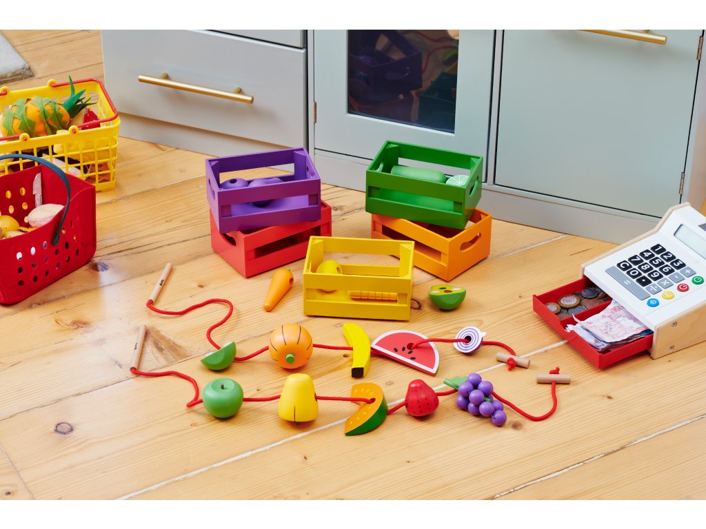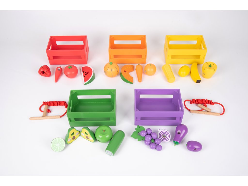 28 dílů (ovoce, zelenina, bedýnky a šňůrky)