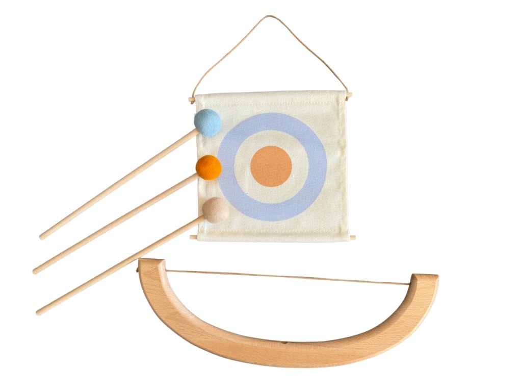 Dřevěný luk s terčem a šípy