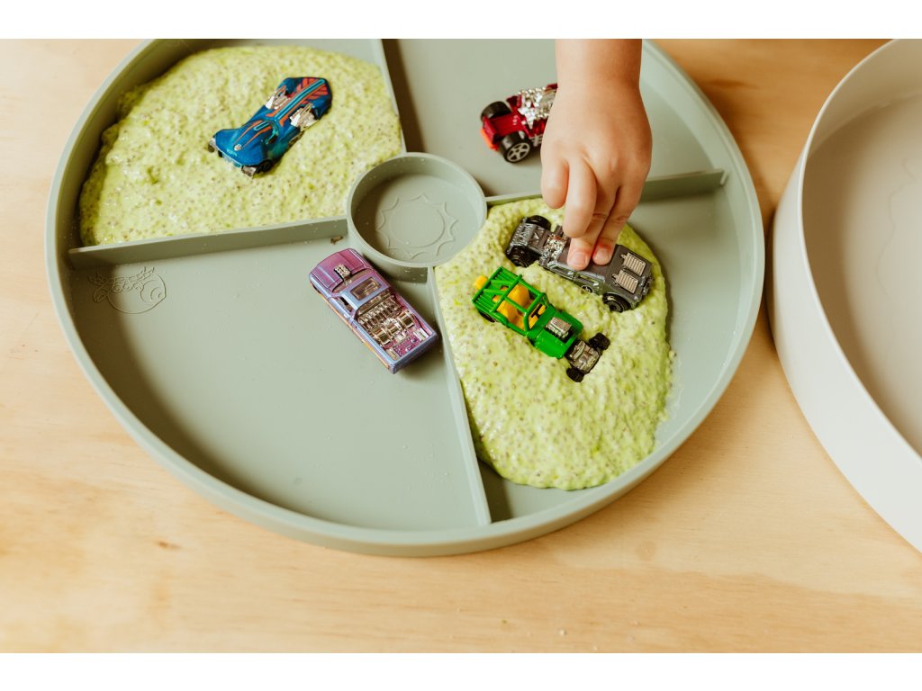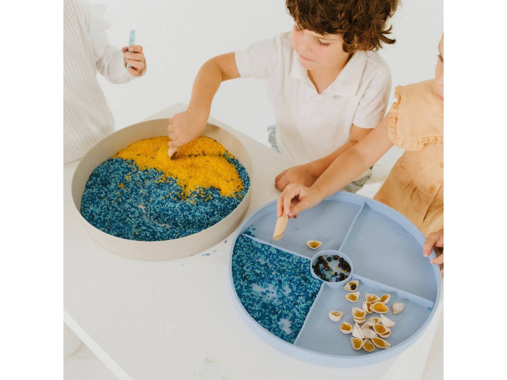 Tray Play podporuje smyslový rozvoj, jemnou motoriku, koordinaci oko–ruka i kreativní myšlení. Skvěle zapadá do konceptu sensory play a smyslohraní doma i ve školkách.