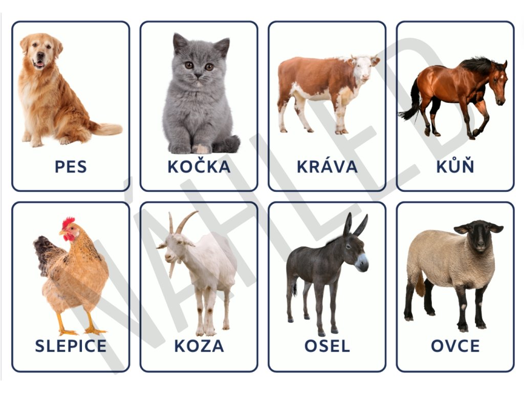 Kartičky - zvířátka (domácí, lesní a hospodářská) + BONUS