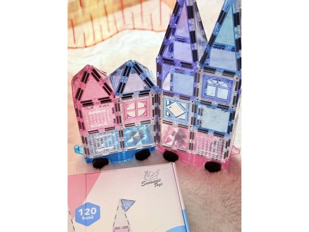 S naši stavebnici vás nečekají žádná omezení! Díky speciálně navrženým magnetickým dílkům mohou děti vytvořit své vlastní vzdušné zámky, kolotoče, skluzavky, nebo dokonce města budoucnosti. Jediným limitem je dětská představivost! Navíc díky našim třpytivým dílkům bude každá stavba zářit jako hvězdná obloha.