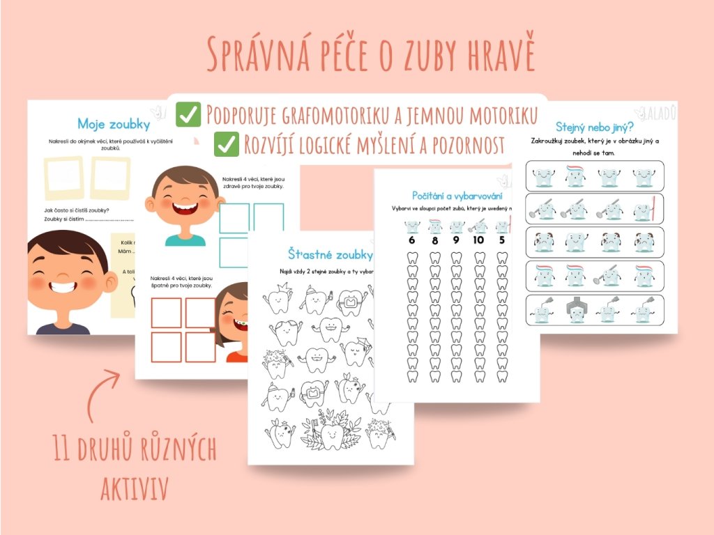 📌 Tip! Tento pracovní sešit je skvělým doplňkem k sadě „Hra na zubaře – výukový materiál o zoubkách pro děti“. Pořiďte oba materiály a vytvořte si doma malou zubařskou ordinaci! 🏥🦷. Tuto sadu najdete TADY.
