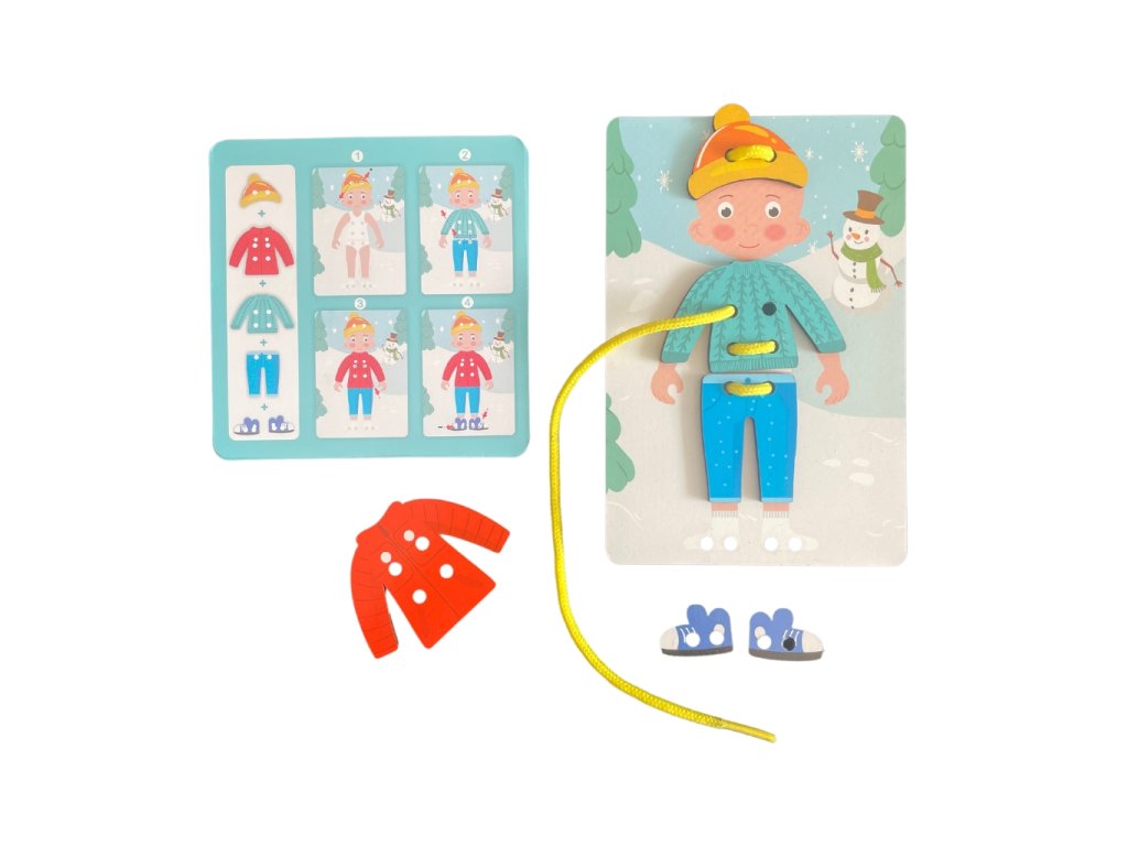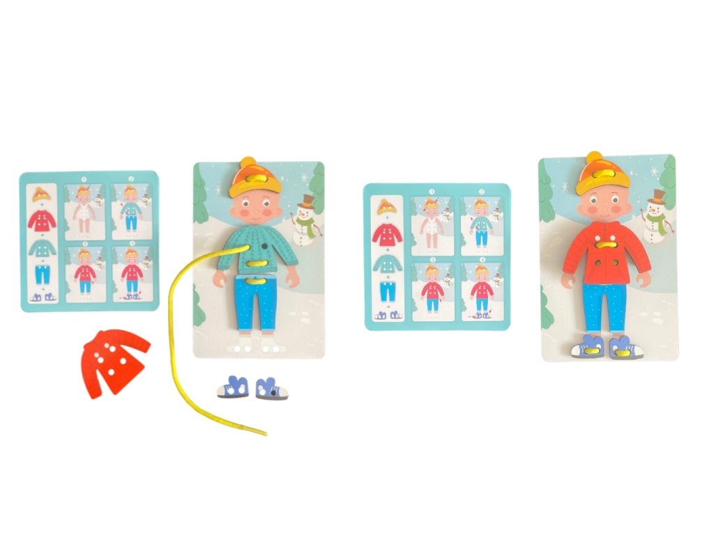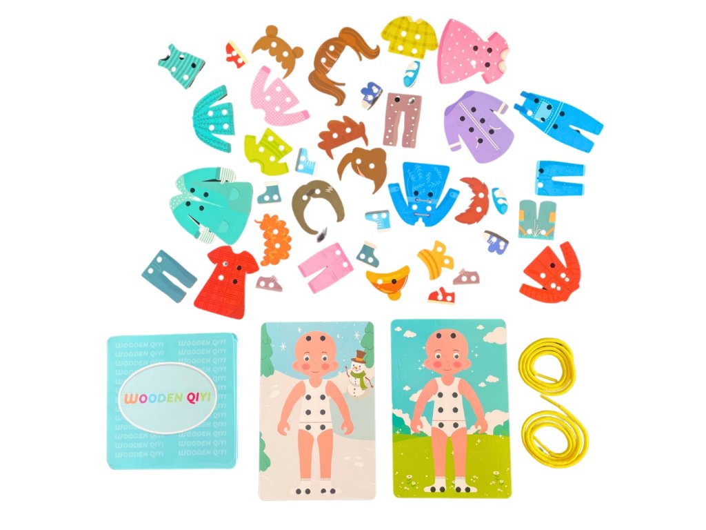 Montessori dřevěná provlékací hra – oblékání postaviček