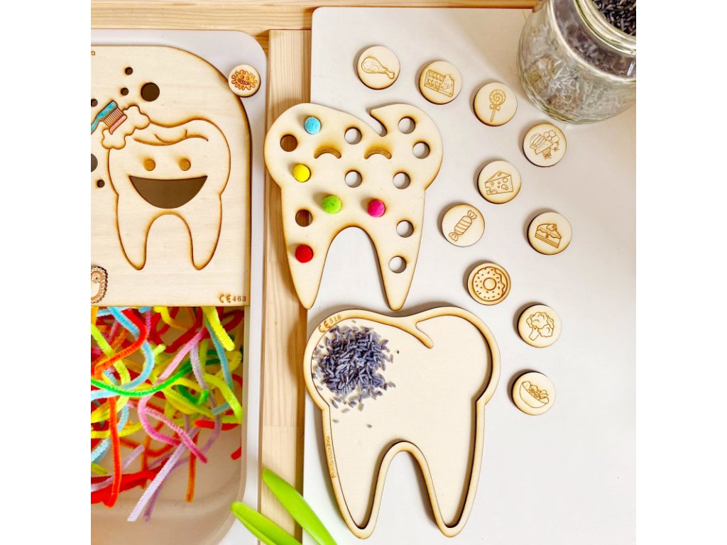 Vysypávací tác ve tvaru zubu – ideální pro hraní s různými přírodními materiály (rýže, čočka, fazole, těstoviny…)