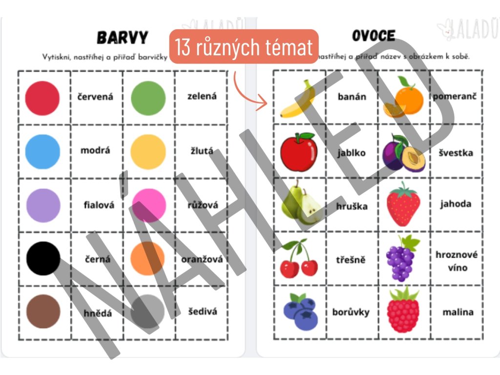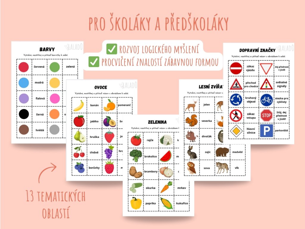 13 stran s tematicky rozdělenými dvojicemi obrázek + text
