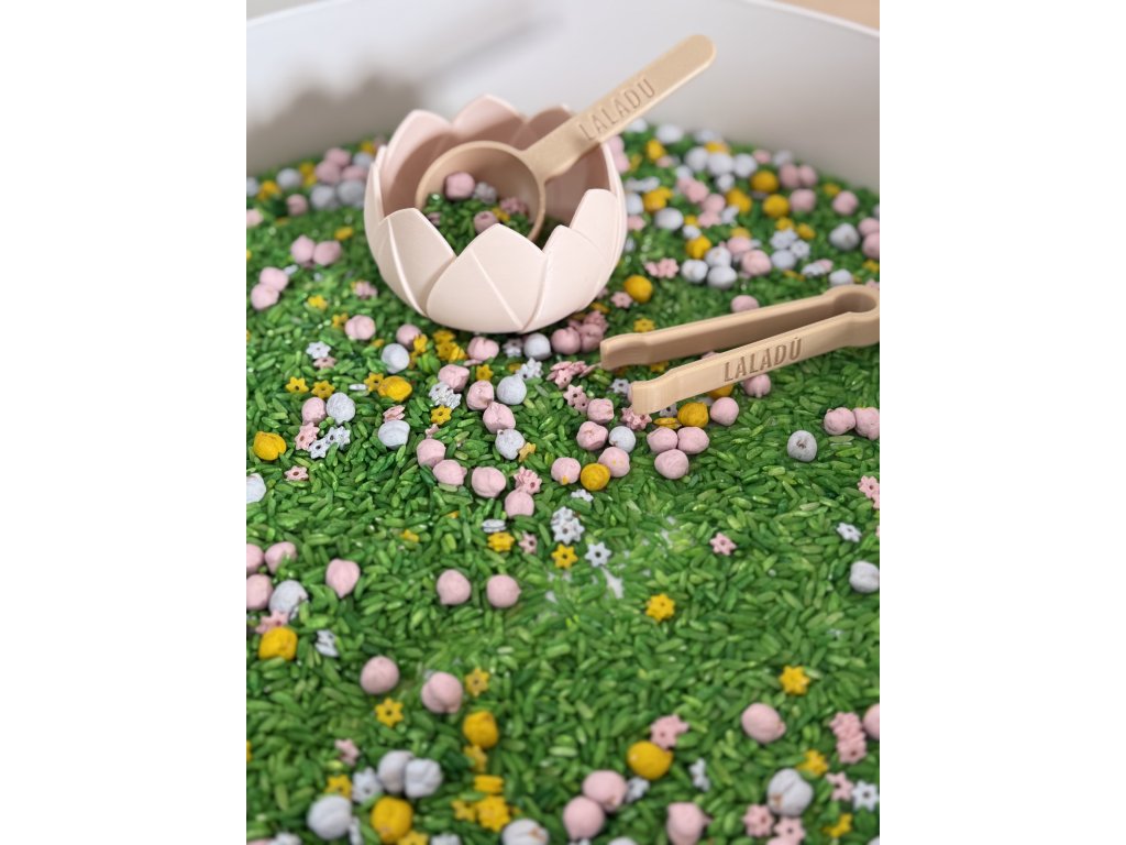 🌷 jarní smyslový materiál – přesýpání, třídění a objevování