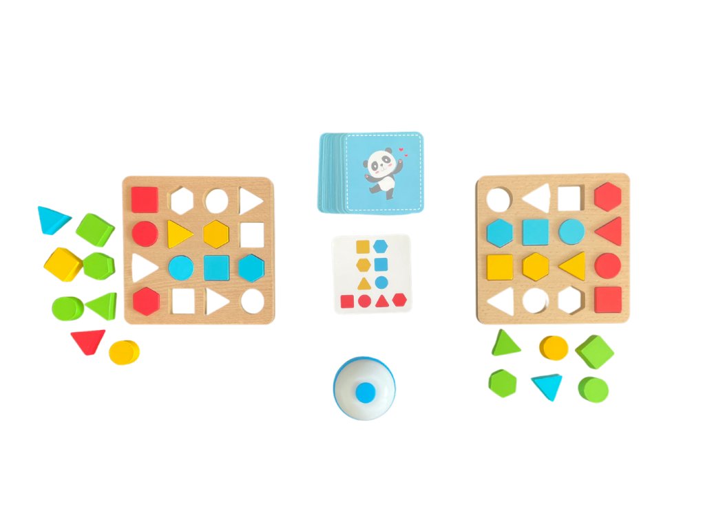Díky této hře se děti učí prostorové pojmy a podporují logické myšlení, soustředění a jemnou motoriku. Hra obsahuje oboustranné karty s různými úrovněmi obtížnosti (1–5...