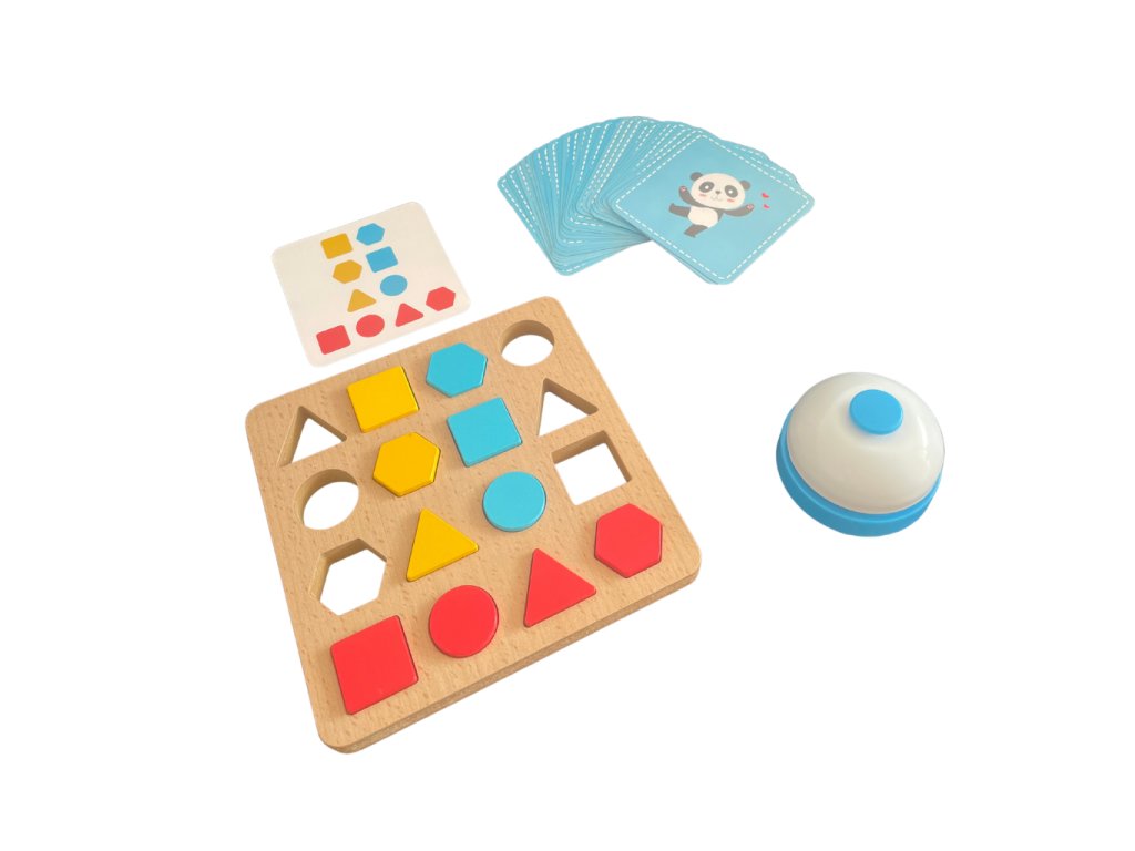 🛎️ Zacinkej jako první na zvoneček, když správně složíš geometrické tvary podle zadání na kartičce.