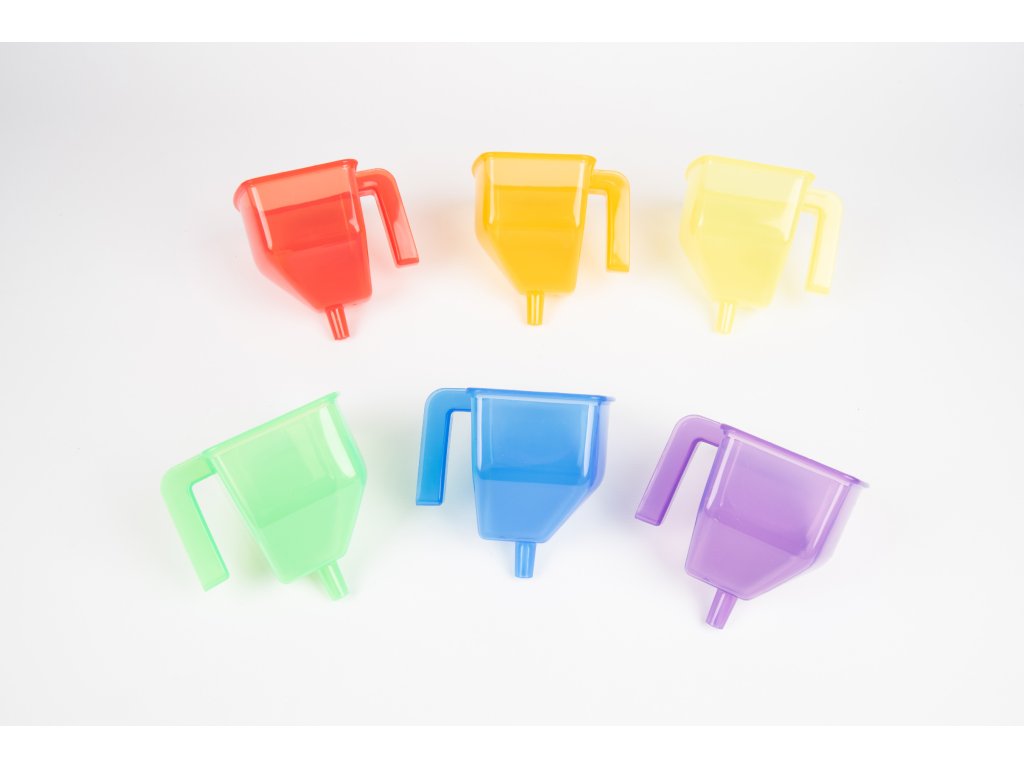 🧪 Trychtýře skvěle doplní další produkty ze série Translucent Colour Play – kombinujte je s pipetami, pinzetami, kyblíčky nebo konvičkami a vytvořte dětem jejich vlastní malou vodní laboratoř!