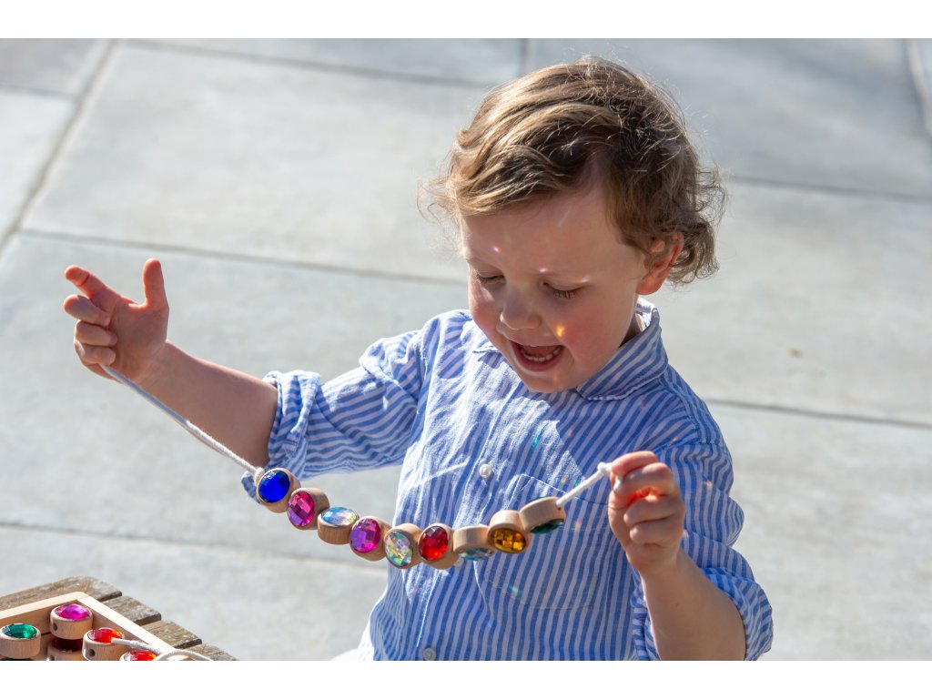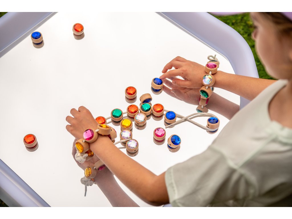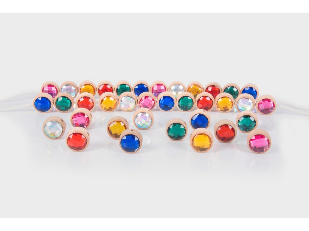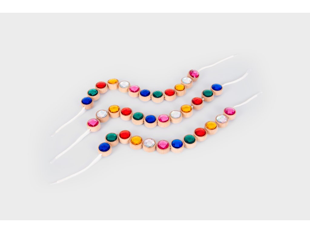 Materiál: FSC® certifikované bukové dřevo + akrylové drahokamy