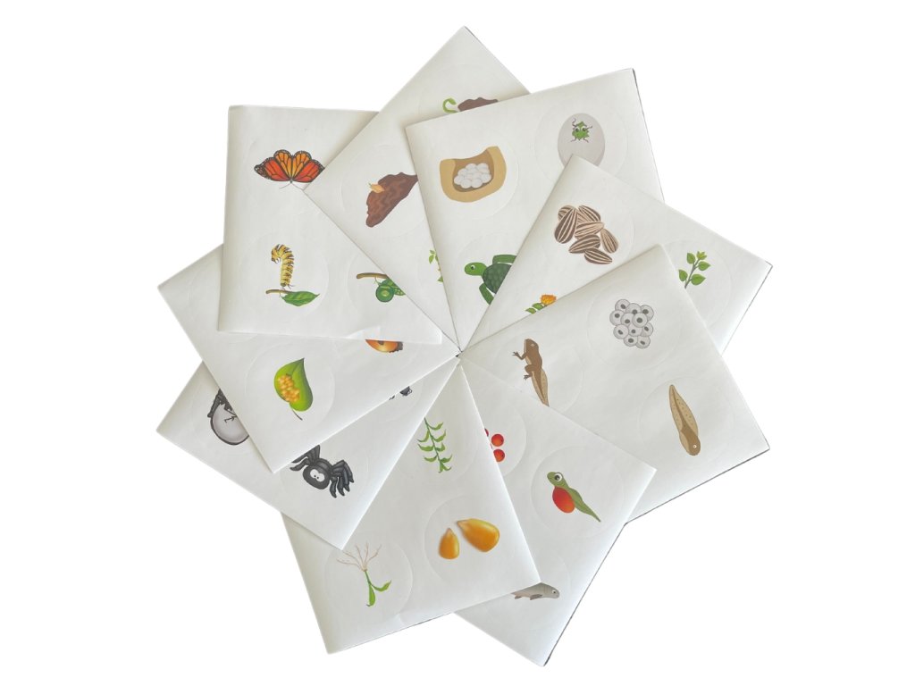 👉 Během lepení štítků si můžete povídat o přírodě a popsat tak dítěti celý cyklus, který si potom procvičováním zapamatuje.