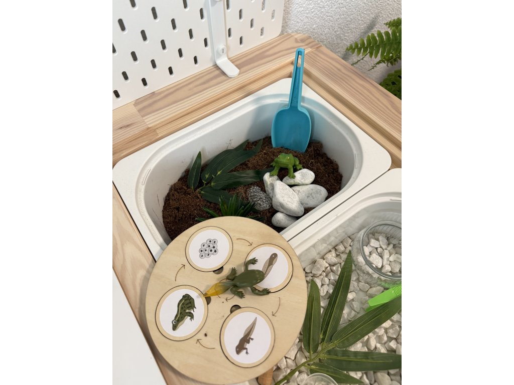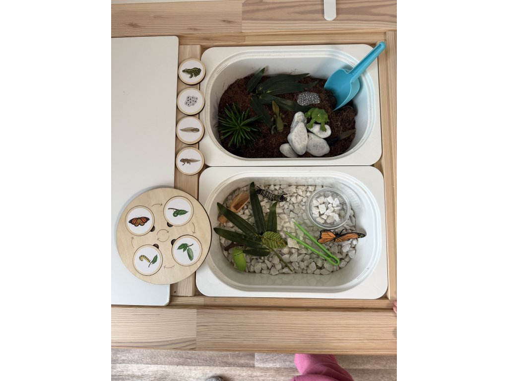 🍅 Patří k oblíbeným aktivitám dětí, při této hře se pomocí dřevěných dílků učí přirozenou cestou přiřazovat životní fáze motýlků, ryb, rostlin a dalších.